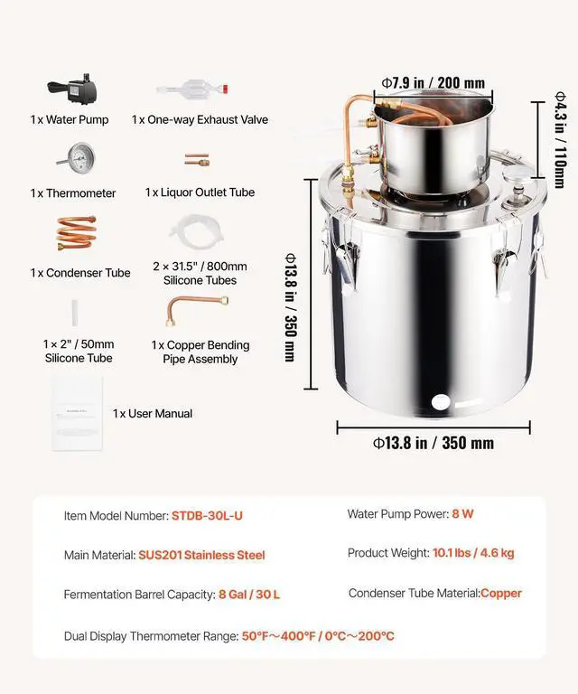 Fermentation Barrel Capacity: 8 Gal / 30 L