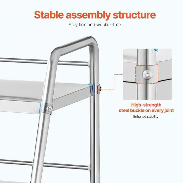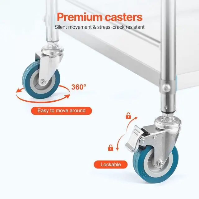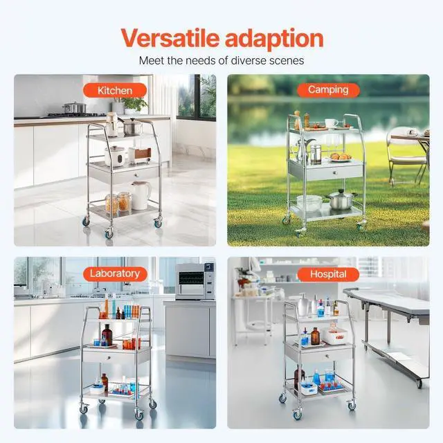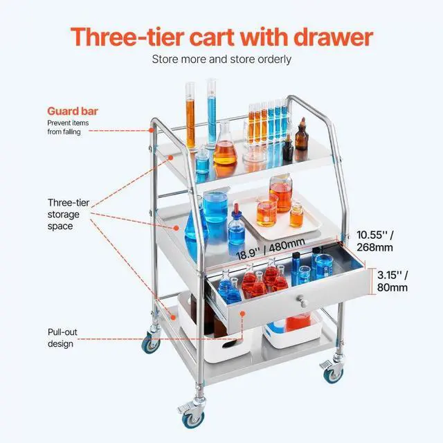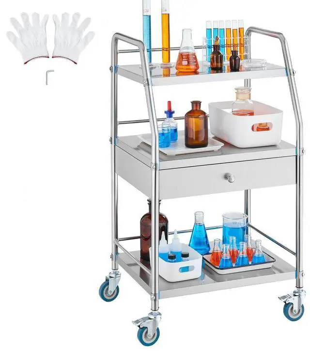 Lab Rolling Cart Dental Lab Serving Cart 3 Tiers Drawer Stainless Steel