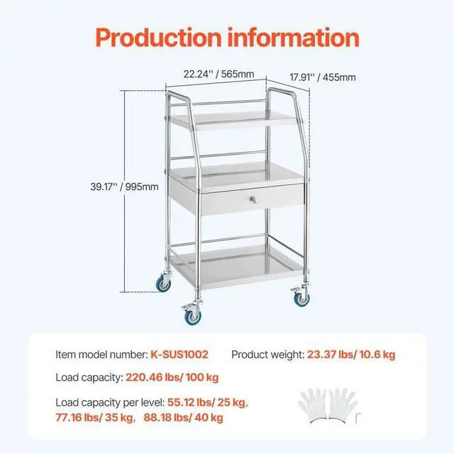Weight Capacity: 220.46 lbs /110 kg (Per Shelf: 55.12 lbs / 25 kg, 77.16 lbs / 35 kg, 88.18 lbs / 40 kg),Item Model Number: K-SUS1002,Product Weight: 23.37 lbs / 10.6 kg,Product Dimensions: 22.24 x 17.91 x 39.17 inches / 565 x 455 x 995 mm