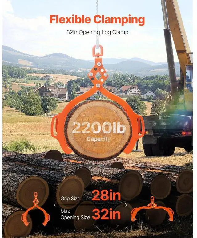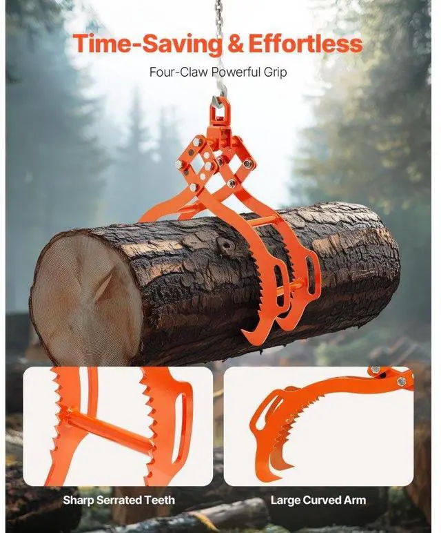 32in Log Lifting Tongs 4 Claw Solid Steel Log Grapple Swivel Log Tools