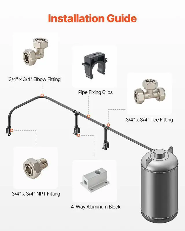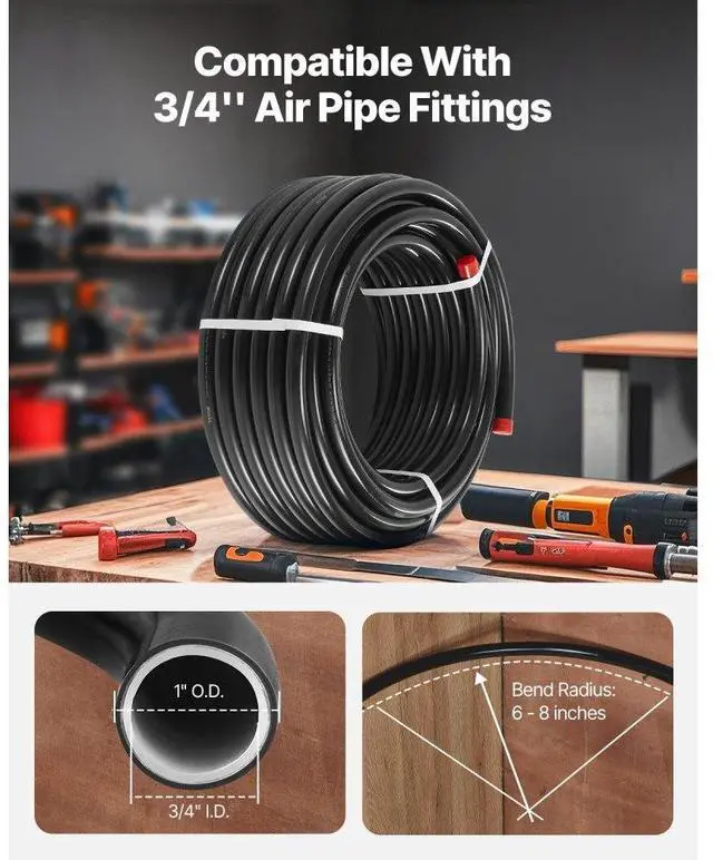 Air Compressor Line Kit 3/4'' x 100FT HDPE/Aluminum Shop Air Piping System Black