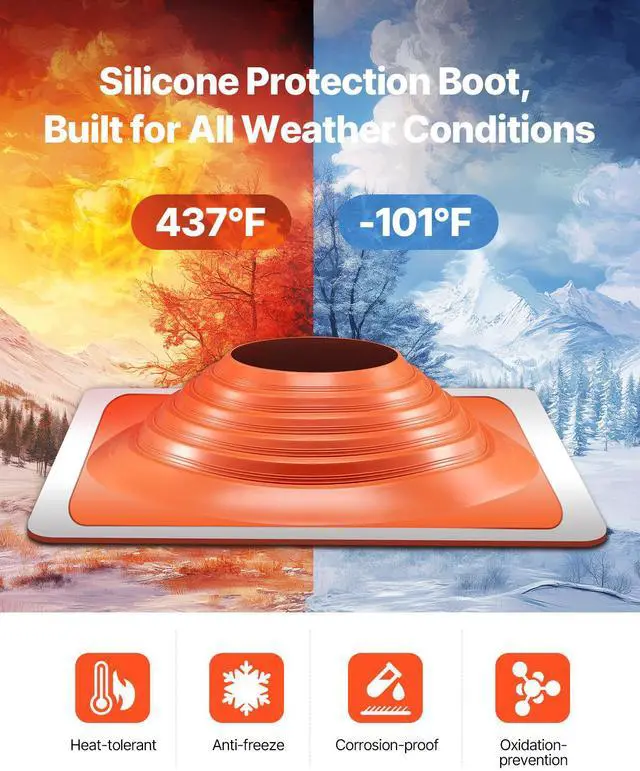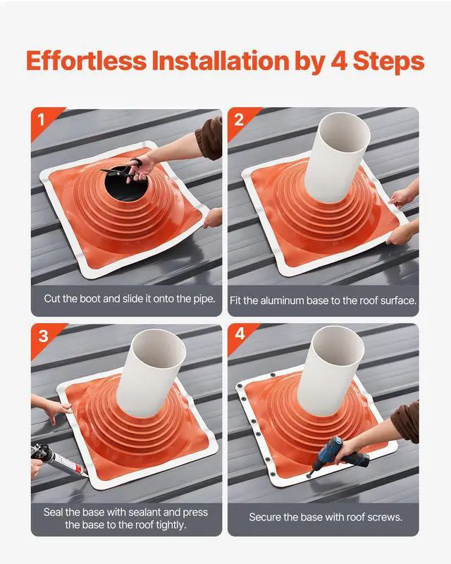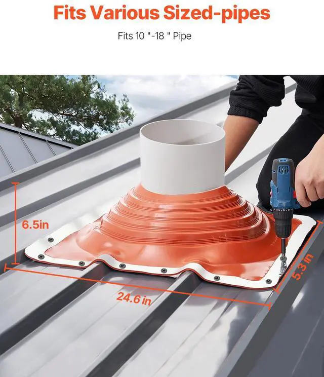 Metal Roof Pipe Flashing Boot Fits 10"-18" Pipe High Temp Flexible Red Silicone