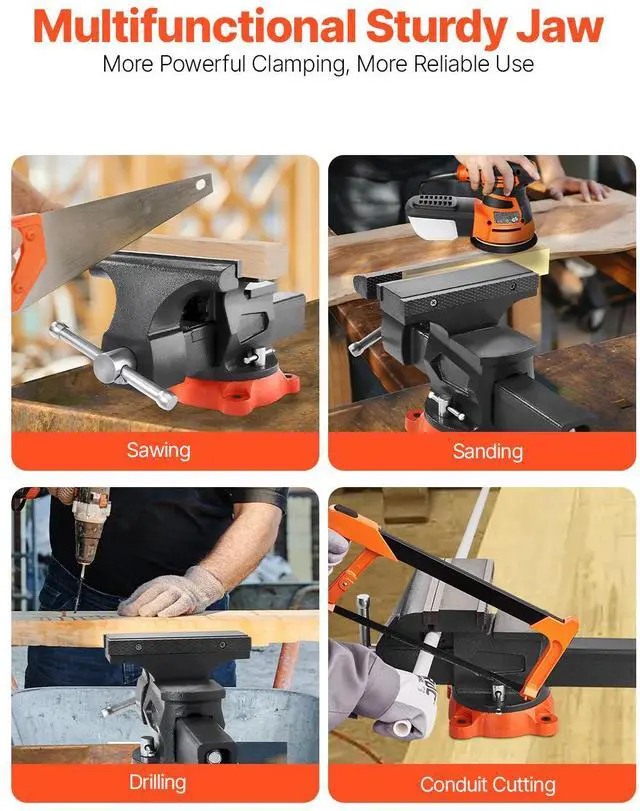 • Rock-Solid Mounting Design: Built for tough jobs, our rotating bench vise features a robust 4-bolt mounting design that delivers superior stability. It ensures a secure hold, even under intense pressure, allowing you to focus on what matters mostgetting the job done