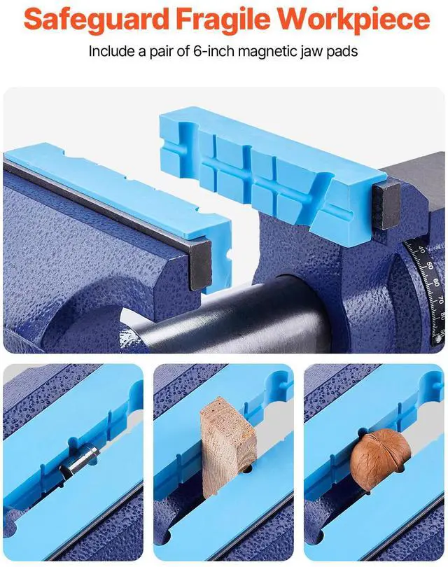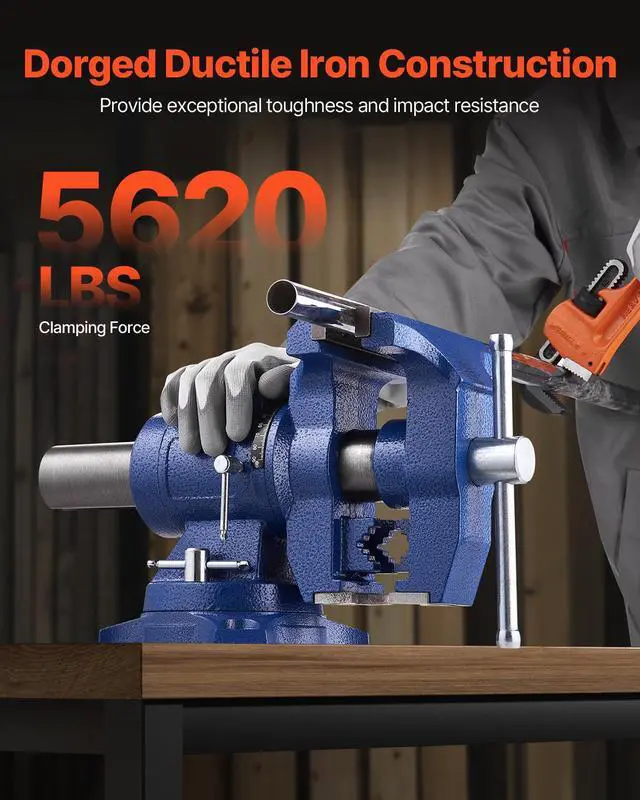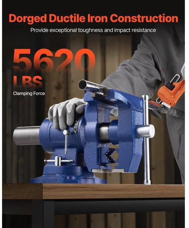 6-1/2" Multi-Purpose Bench Vise Heavy Duty Ductile Iron 360° Swivel Base