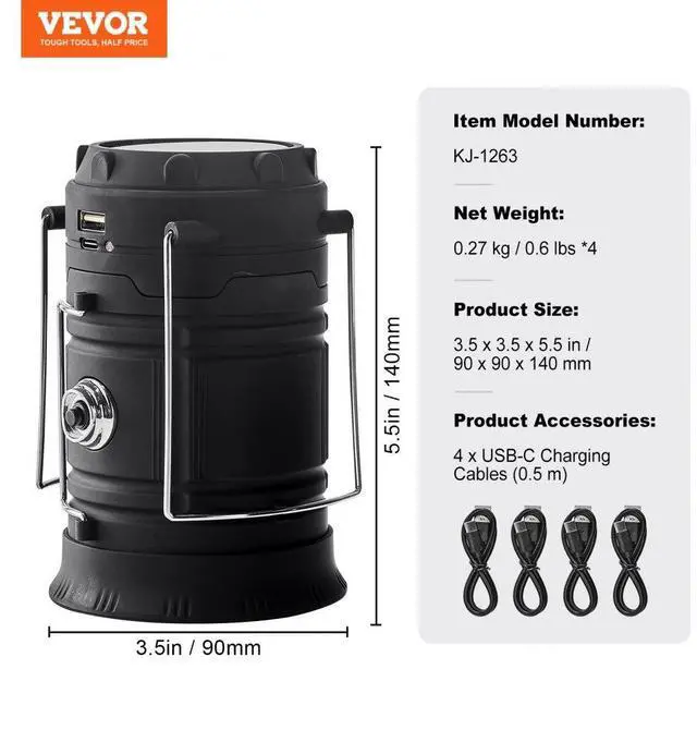 LED Camping Lanterns Portable Rechargeable Lights as Battery Bank 4 PCs