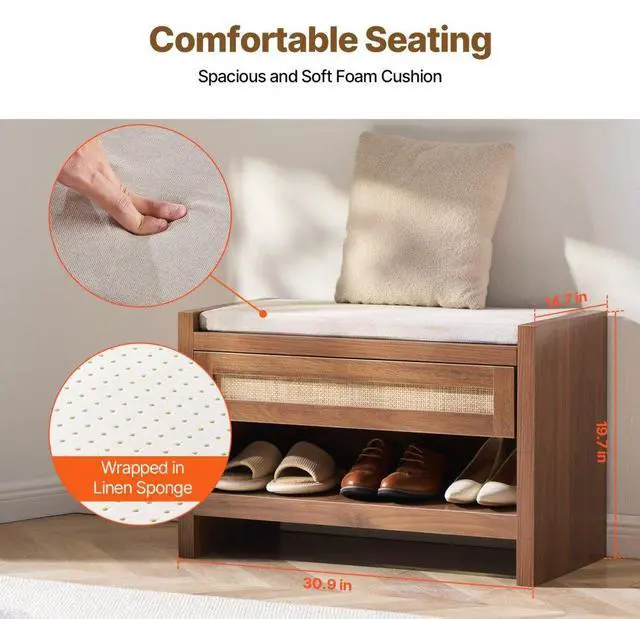 Weight Capacity: 330 lbs / 150 kg,Foot Pads: Non-Slip Foot Pads,Color: Brown,Seat Surface Matreial: Linen Sponge + Sponge Cushion,Item Model Number: HYXD-04,Frame Material: PB,Product Dimensions: 30.9 x 14.7 x 19.7in / 786 x 374 x 500mm,Layer: Three Layers (Top, Drawer, and Storage Layer),Net Weight: 35.1 lbs / 15.9 kg,Ratten Materal: Plastic Rattan