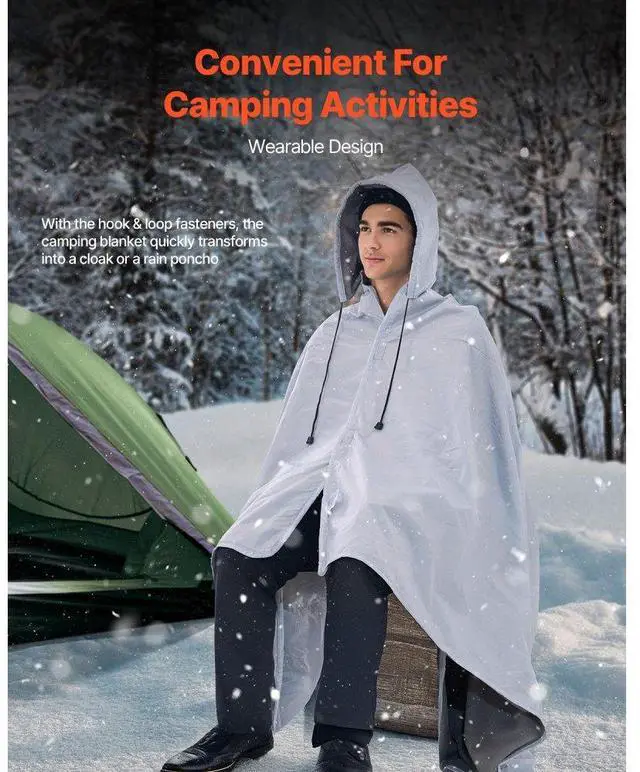 Camping Blanket 79" x 59" Wearable Warm Stadium Blanket Outdoor Light Grey