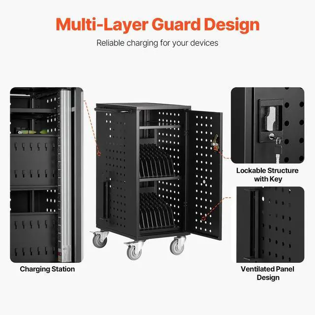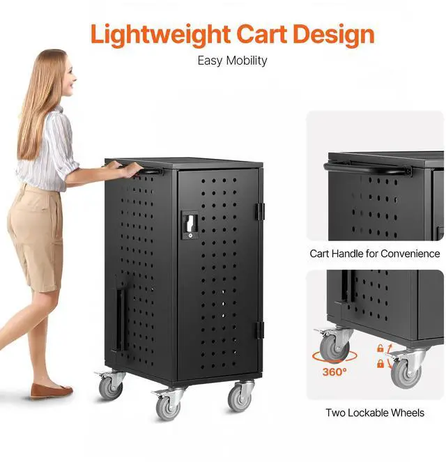 VEVOR Laptop Cart, 20 Device Mobile Charging Cart, Up to 15.6 in Screen Size, Office and Classroom Mobile Charging Cart, for Chromebook, Tablet and Laptop