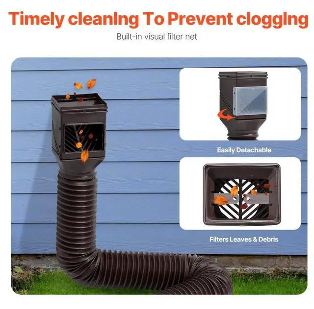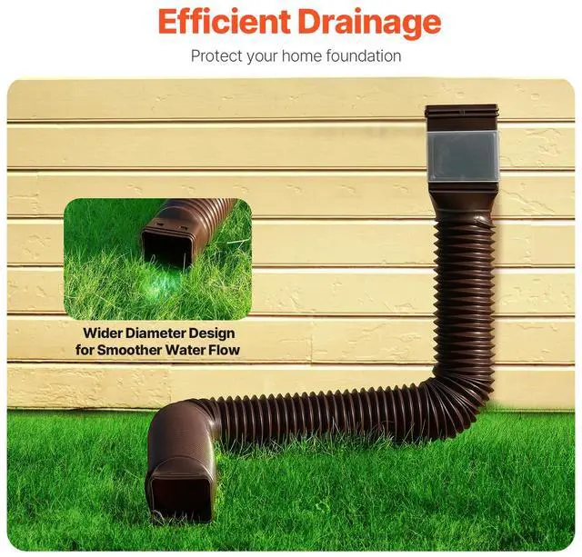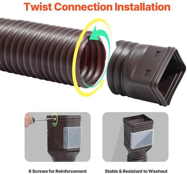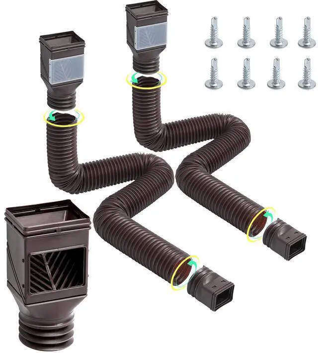 Rain Gutter Downspout Extensions 2-Pack Flexible Downspout Extender Brown
