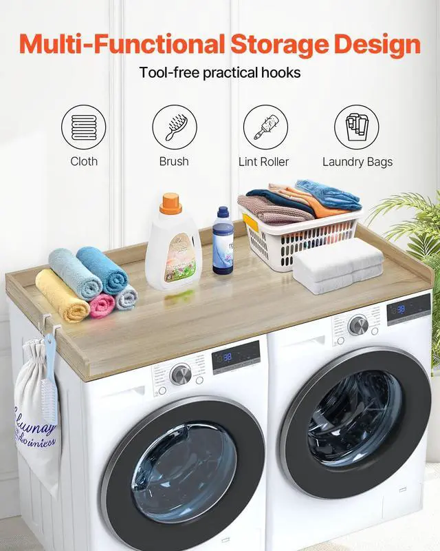 • VEVOR Royxen Laundry Countertop Solid Wood, Countertop for All Front-Loaded Washing Machine and Dryer, Extra Room for Laundry Room, Oak