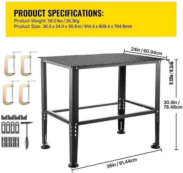 Welding Table 36"x24" 800LBS Welding Workbench Table with Multiple Fixture Holes