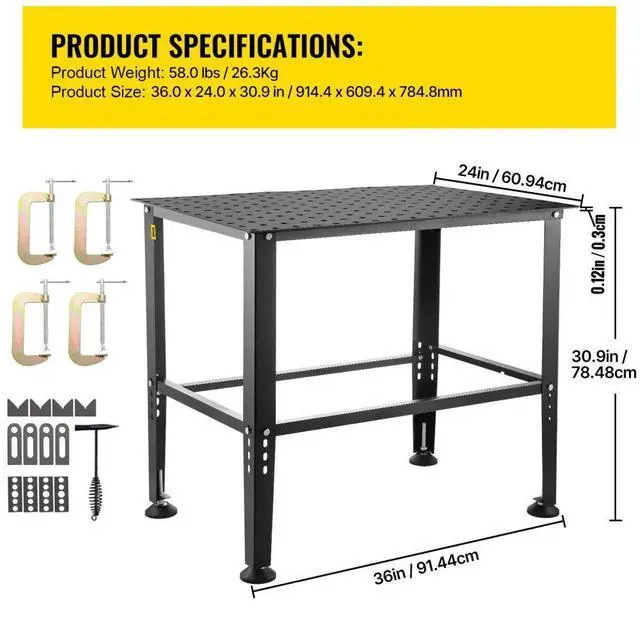 Welding Table 36"x24" 800LBS Welding Workbench Table with Multiple Fixture Holes