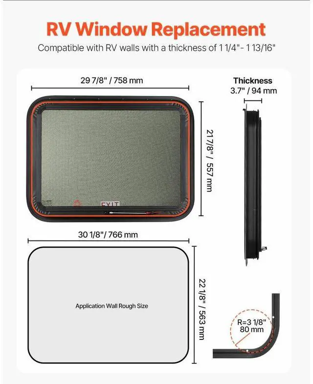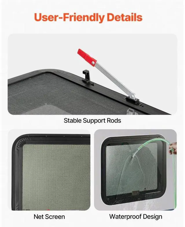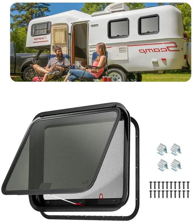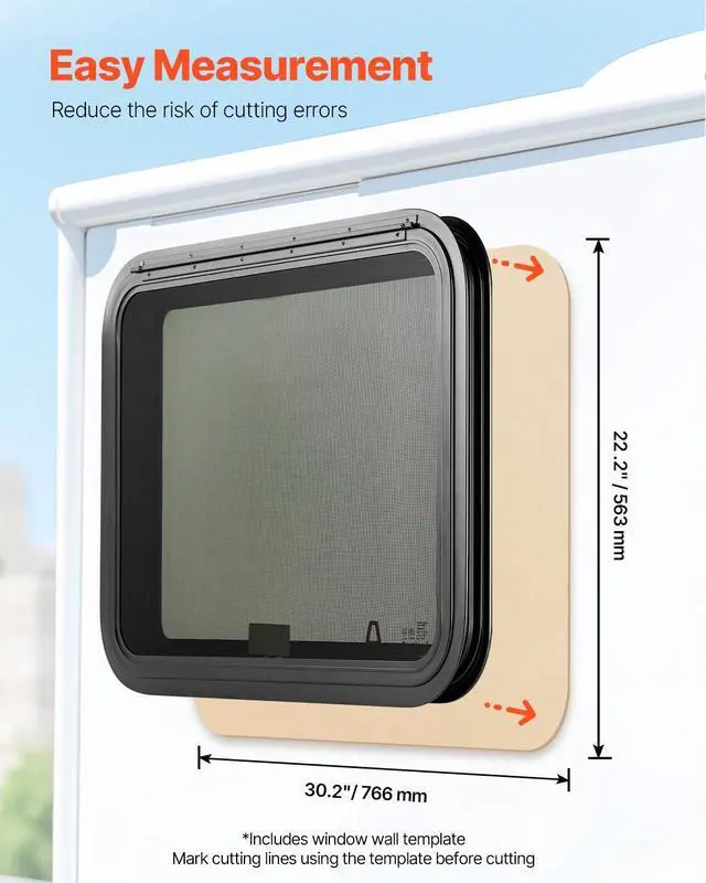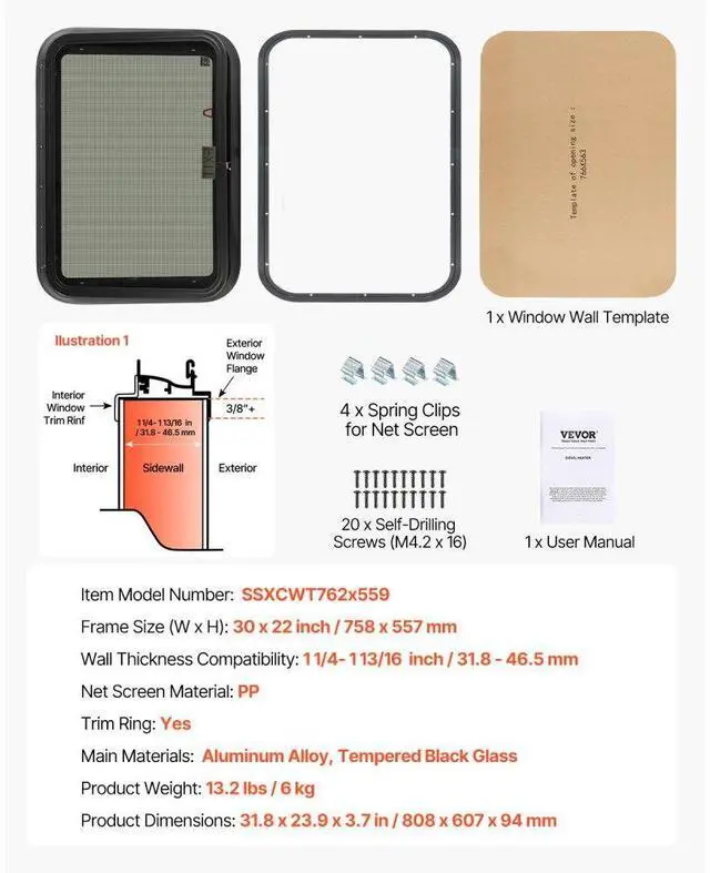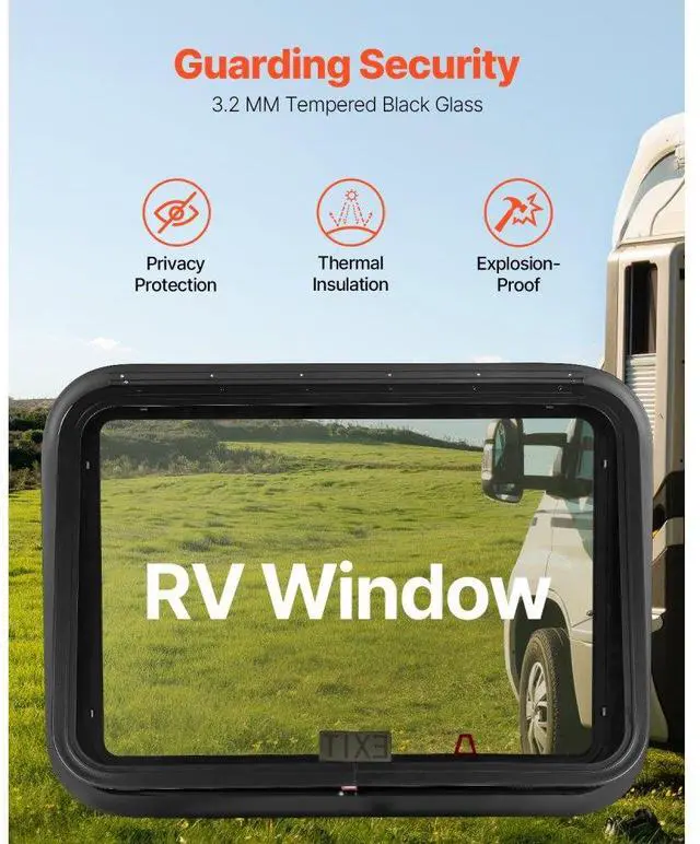 VEVOR Exit RV Window 30" W x 22" H Emergency Push Out Window W/ Screen & Ring