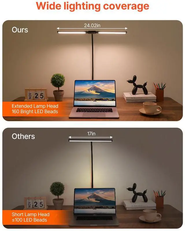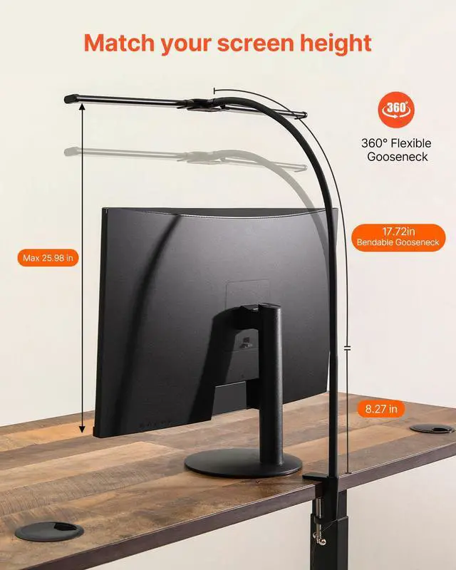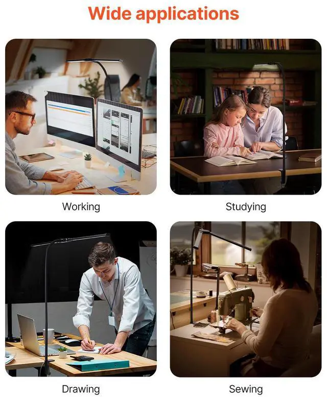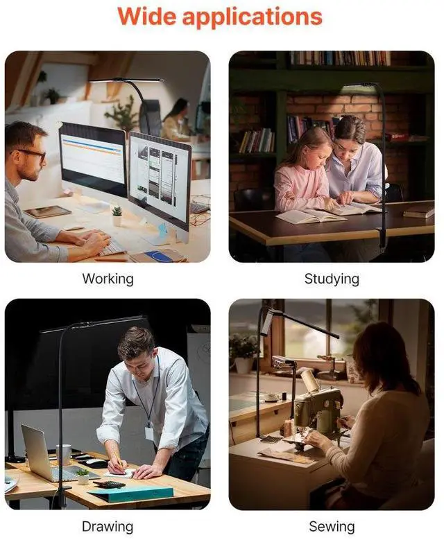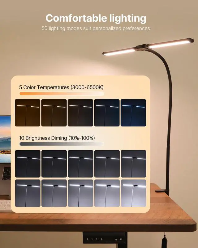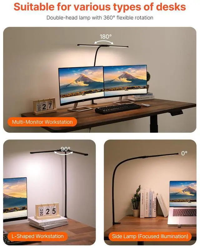 LED Desk Lamp with Clamp Double Head Desk Lamp with 360° Adjustable Gooseneck