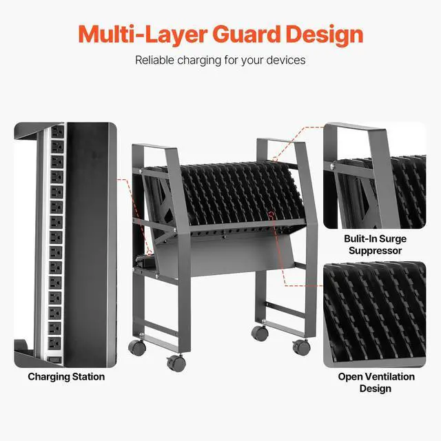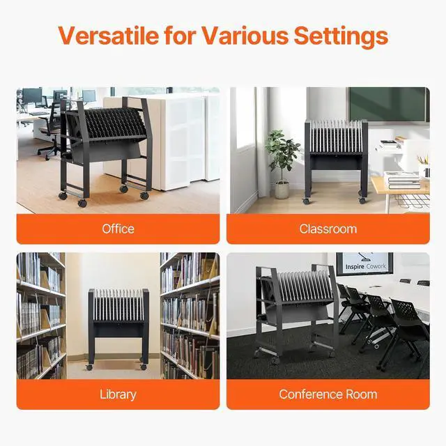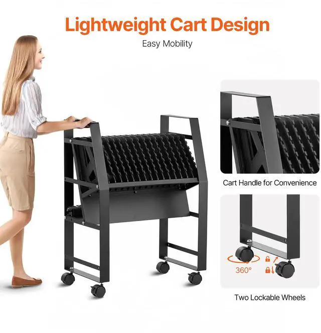 VEVOR Charging Cart, 16 Device Mobile Open Charging Station, Up to 15.6 in Screen Size, Office and Classroom Mobile Charging Cart, for Chromebook, Tablet and Laptop