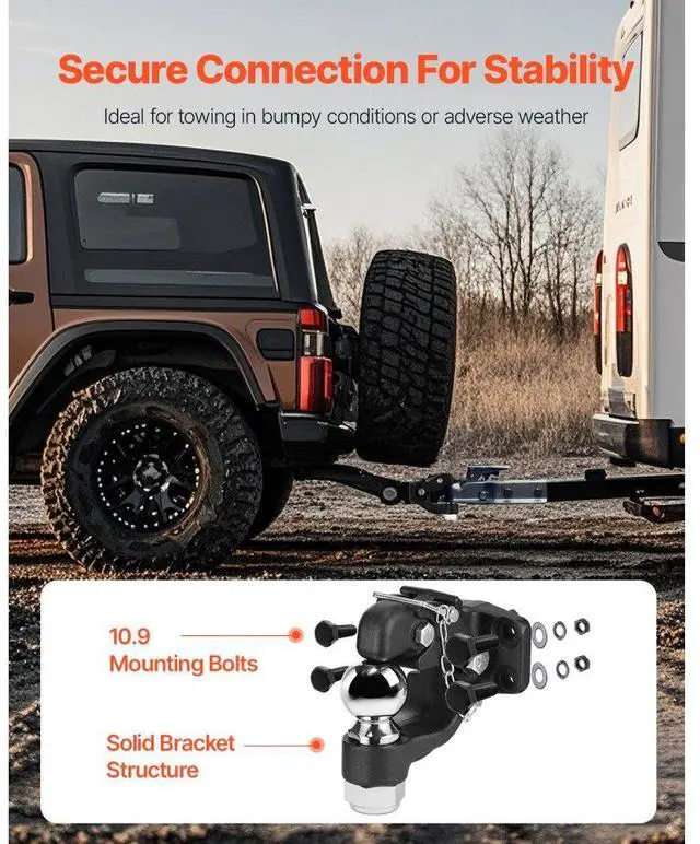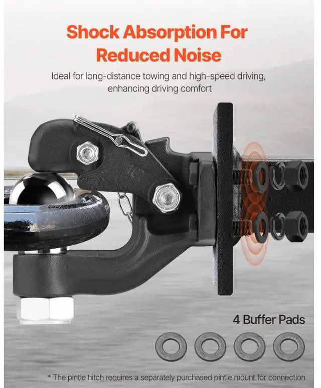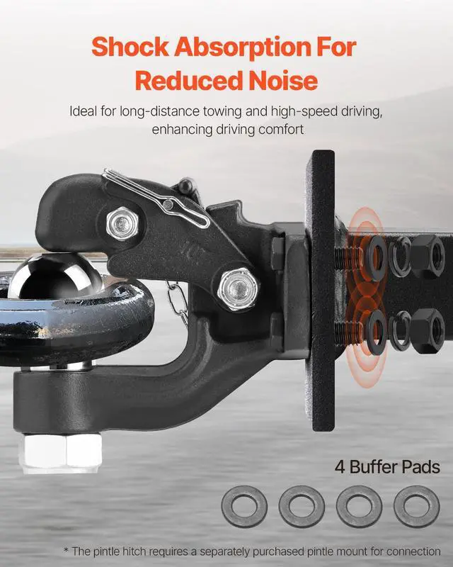 Pintle Hitch 2-5/16" Mount Hitch Ball for 2.5" to 3" Lunette Ring 20000 lbs