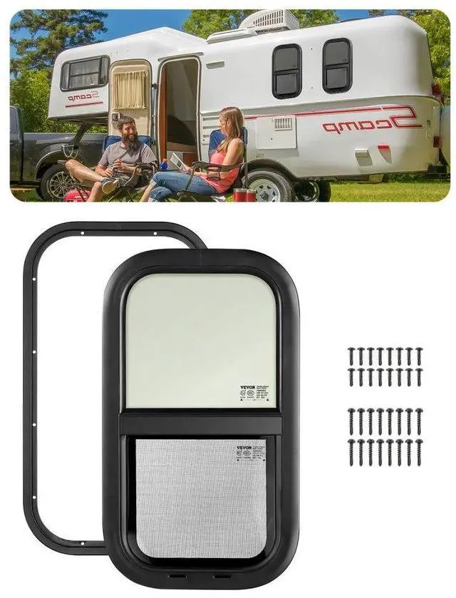 Vertical RV Window 12" W x 22" H Tinted Sliding RV Window & Net Screen Trim Ring