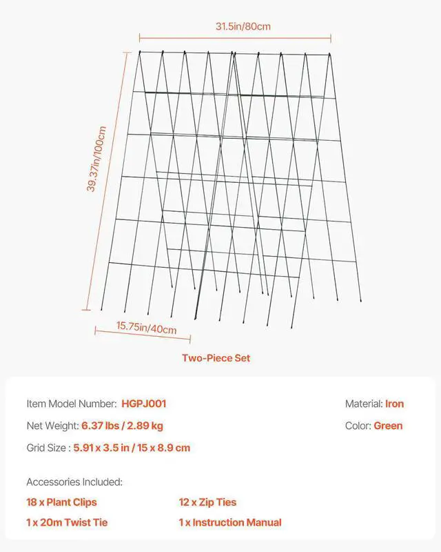 Single Piece: 39.37 x 15.75 in / 100 x 40 cm,Grid Size: 5.91 x 3.5 in / 15 x 8.9 cm,Color: Green,Item Model Number: HGPJ001,Two-Piece Set: 39.37 x 31.5 in / 100 x 80 cm,Material: Iron,Product Dimensions:,Net Weight: 6.37 lbs / 2.89 kg
