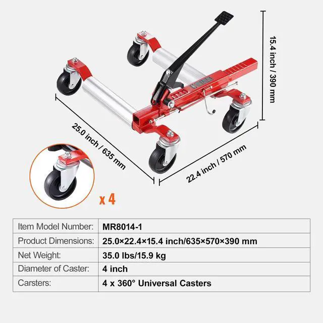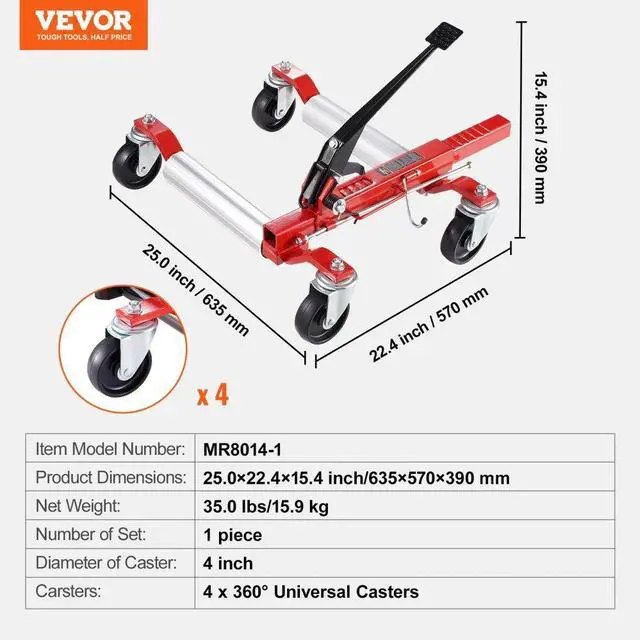 VEVOR Wheel Dolly Heavy Duty Vehicle Positioning Tire Jack Car Lifter 1500 Lbs
