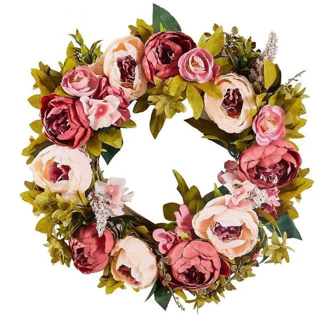 Artificial Decorative Wreath 19 in Pink Peonies Hydrangeas Year Round Wreath