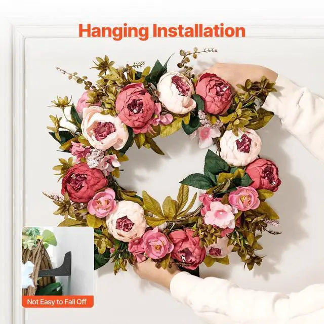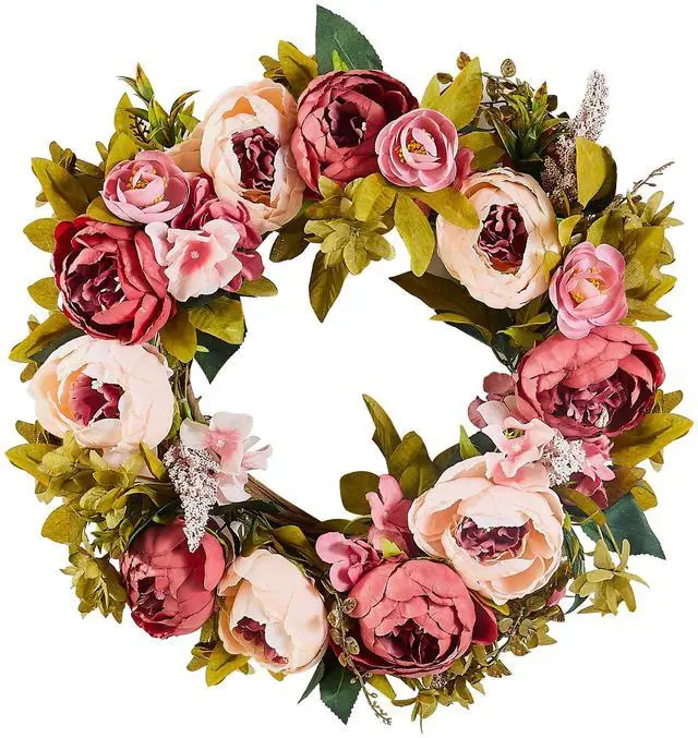 Outer Diameter: 19 in/48.26 cm,Main Materials: Silk Fabric, PE,Flower Diameter (Excluding Leaves): 16 in/40.64 cm,Ring Width: 7.09 in/180 mm,Color: Pink,Item Model Number: WA53362,Flowers: Peonies, Hydrangeas, Babysbreath,Net Weight: 1.1 lb/0.5 kg
