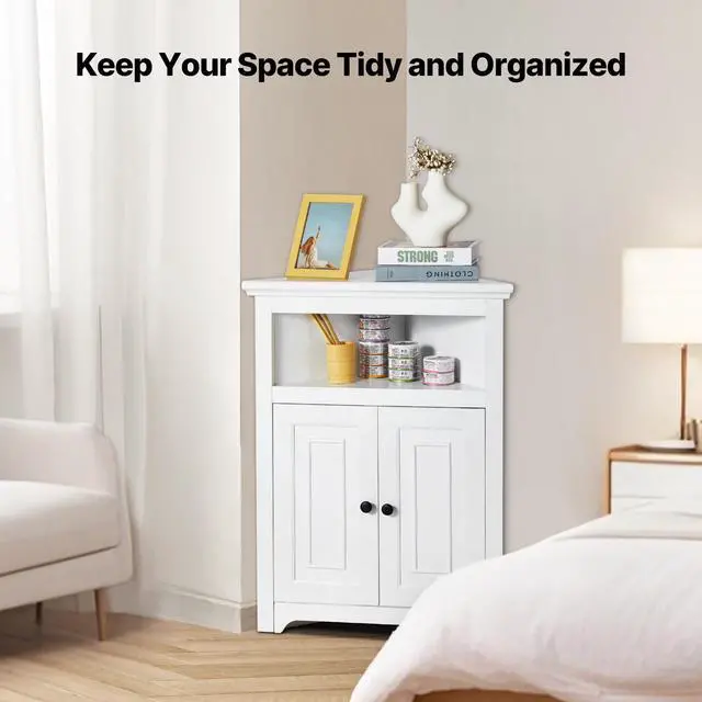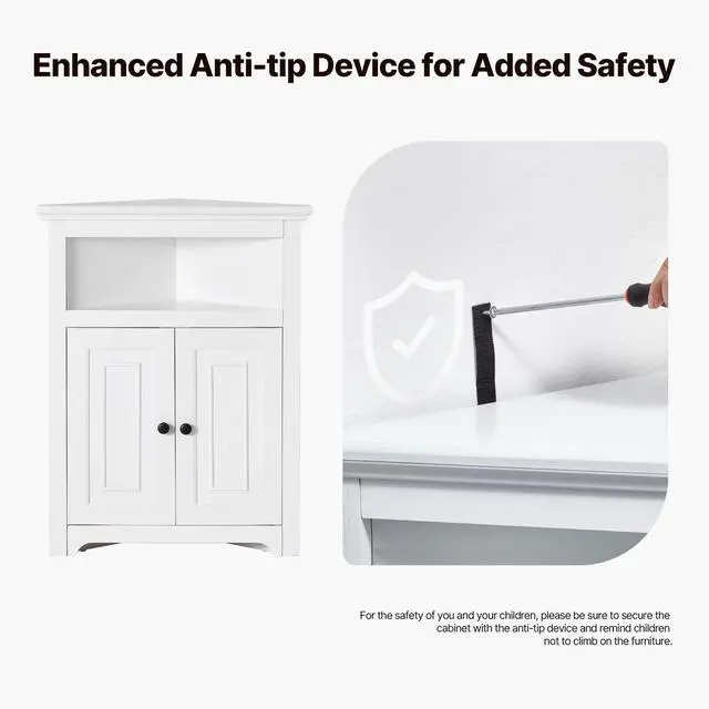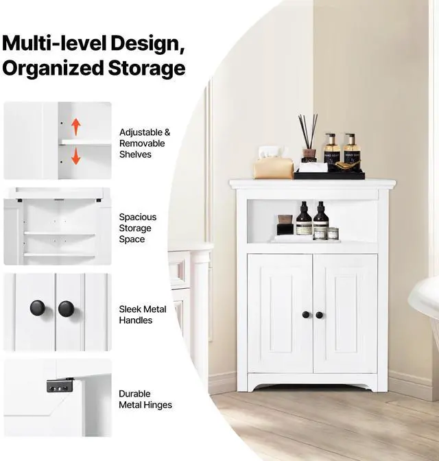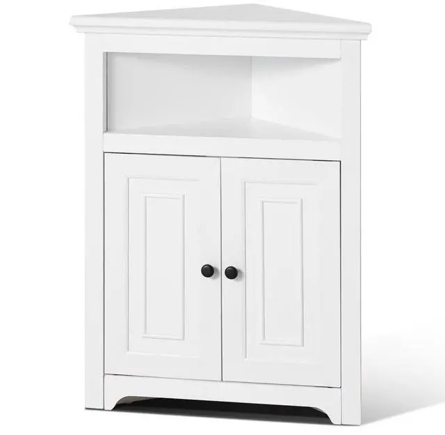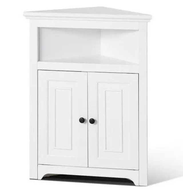 VEVOR 32" Corner Storage Cabinet with 2 Wooden Doors & Adjustable Shelves White