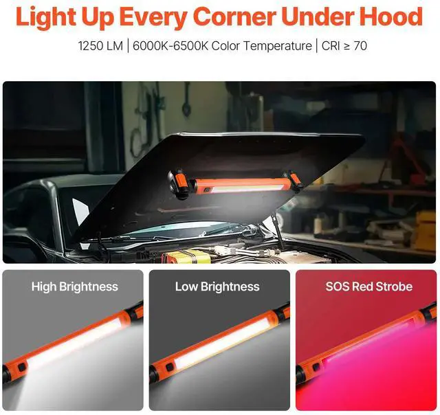 Underhood Work Light 1250LM 6000mAh LED Magnetic Work Light Rechargeable Battery