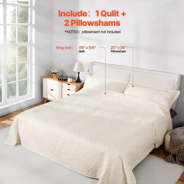 Pillowcase Size: 20 x 36 in / 508 x 914 mm,Color: Beige,Item Model Number: SYSH-C01,Quilt Size: 118 x 106 in / 2997 x 2692 mm,Craftsmanship: Quilting,Quantity: 3,Include: 1 Quilt, 2 Pillow Shams,Material: Cotton,Net Weight: 8.16 lbs / 3.7 kg,Thread Count: 200