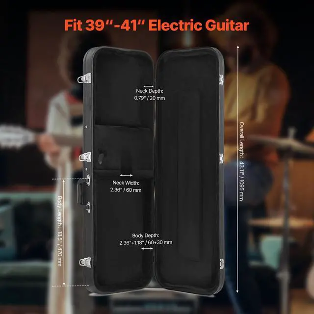 • VEVOR Electric Guitar Hard Case 43.11 in With Lock Handle And Keys for Electric Guitar