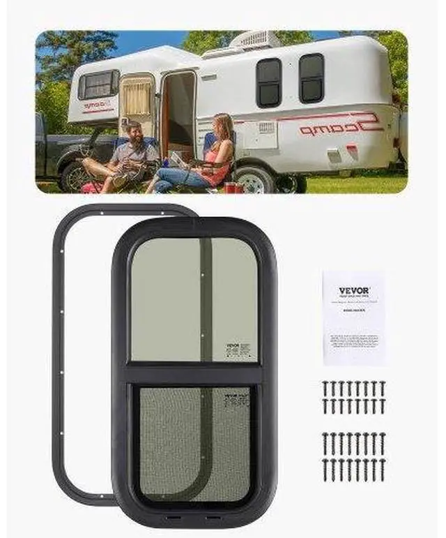 Vertical RV Window 12" W x 24" H Tinted Sliding RV Window & Net Screen Trim Ring