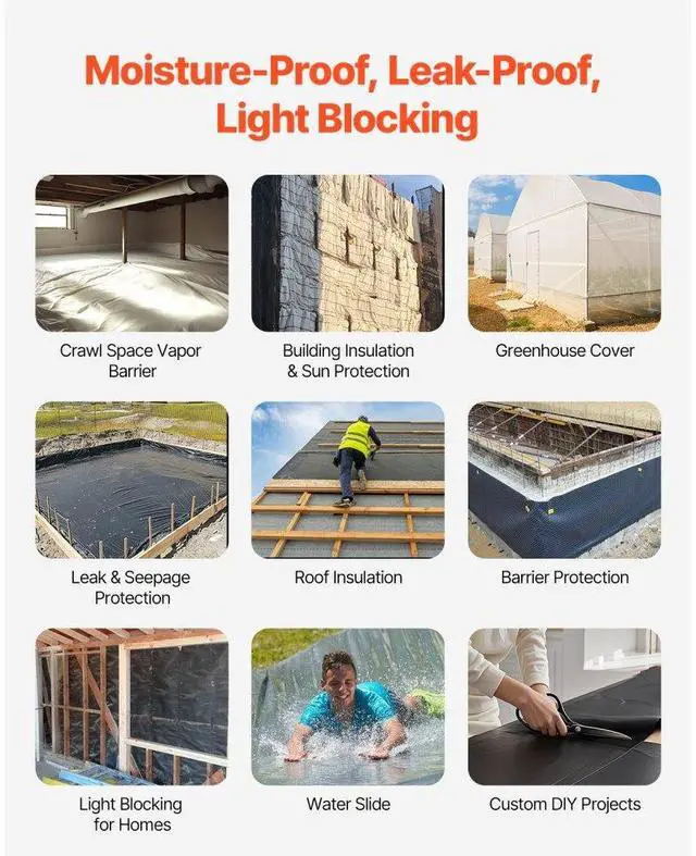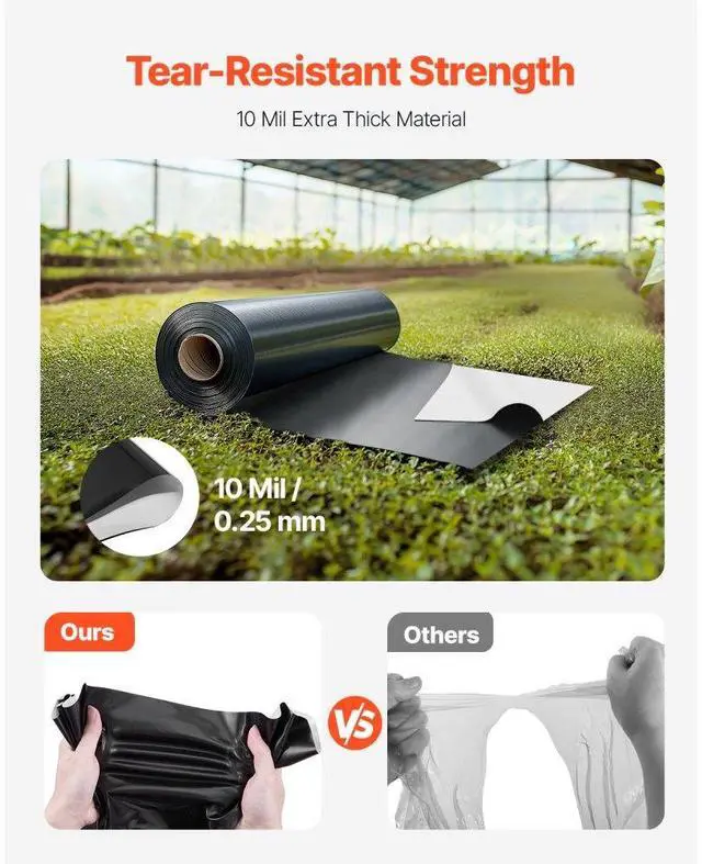 VEVOR 10 Mil Plastic Sheeting Heavy Duty 10' x 100', Thick Plastic Sheeting Roll, Plastic Drop Cloth Painters Tarp Covering for Crawl Space Vapor Barrier, Black and White Double-Sided, Multi-Purpose