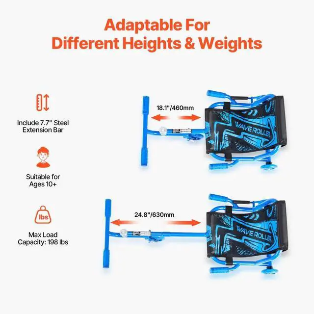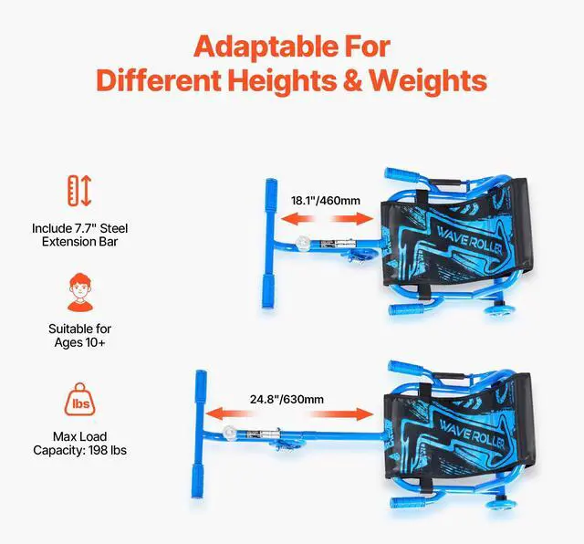 Recommended Age: 10 Years +,Seat Size: 27.6 x 17.7 in / 700 x 450 mm,Load Capacity: 198 lbs / 90 kg,Product Color: Blue,Item Model Number: HD-6003SD,Product Weight: 13.7 lbs / 6.23 kg,Wheel Diameter: 4.7 in / 120 mm,Product Dimensions: 41.7 x 20.5 x 16.9 in / 1060 x 520 x 430 mm,Extension Bar Size: 7.7 in / 195 mm,Wheel Material: PP + PU,Seat Material: 600D Oxford Fabric