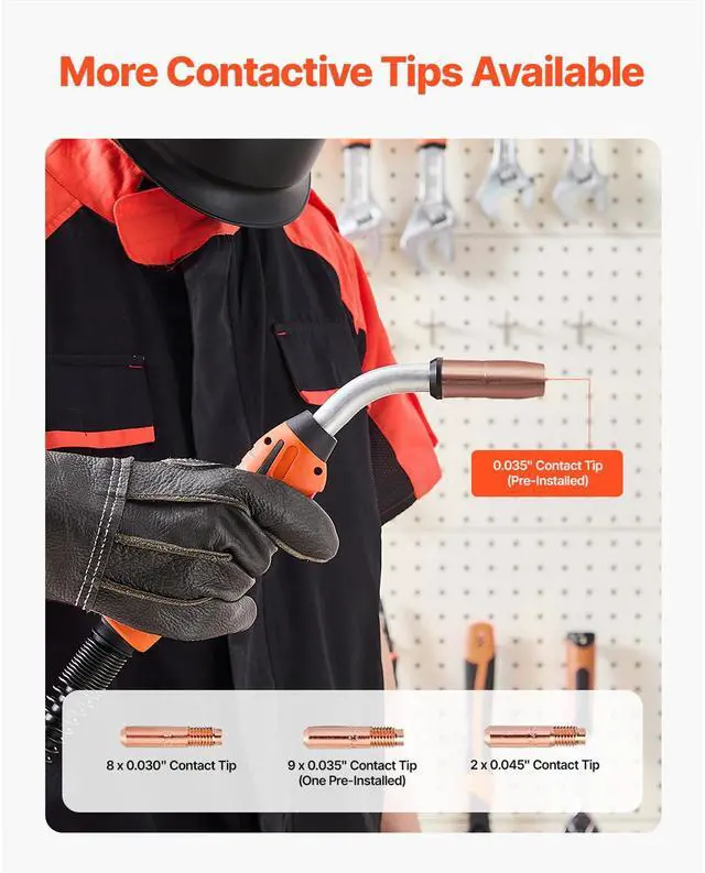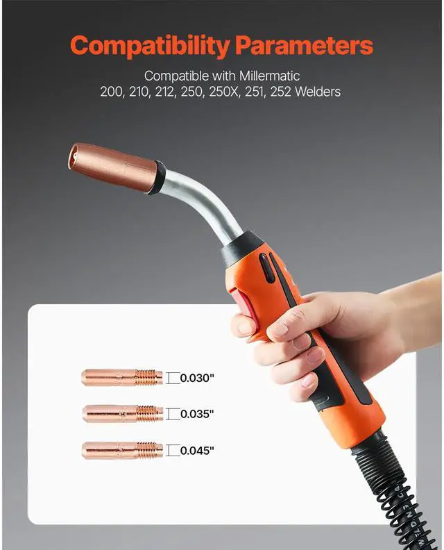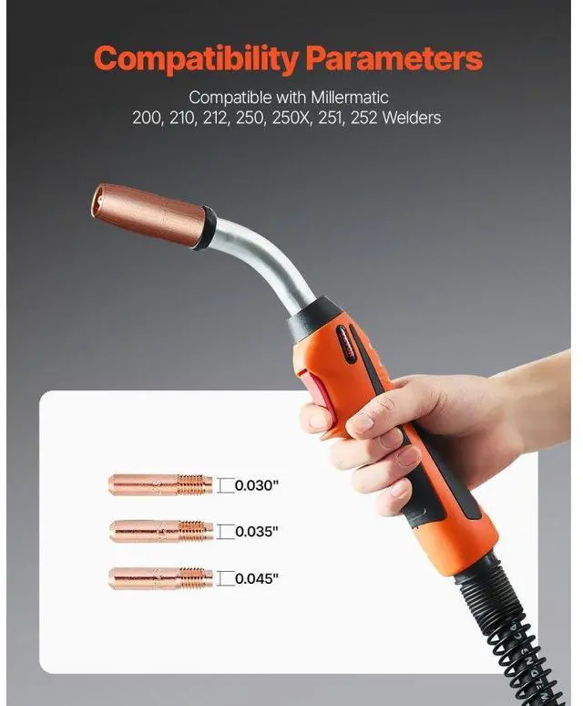 250Amp Mig Welding Gun with 15FT Cable for 0.030" 0.035" and 0.045" Welding Wire
