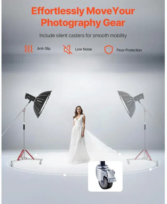 Heavy Duty Light Stand with Casters Max Height 10.5ft/320cm Tripod Stand