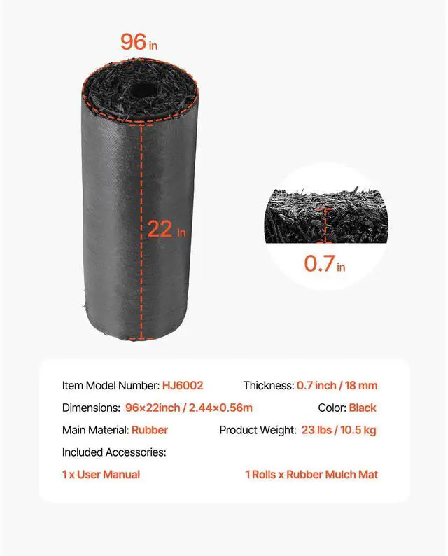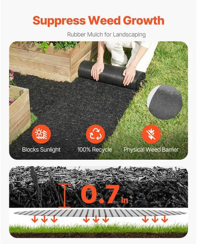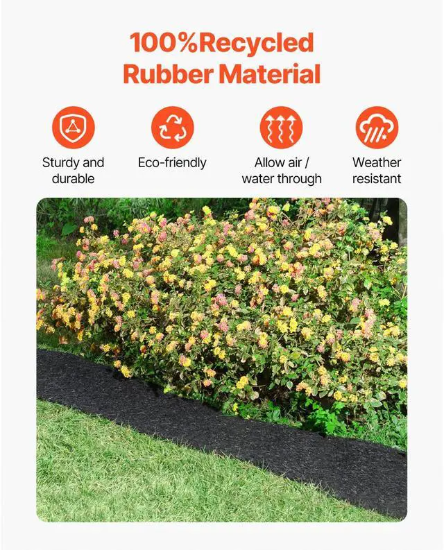 VEVOR Rubber Mulch for Landscaping, Recycled Rubber Mulch Mat 96 x 22 in, Permanent Rubber Pathway, Natural-Looking Black Mulch Garden Edging Border for Plants, Vegetables & Flower Garden Barrier