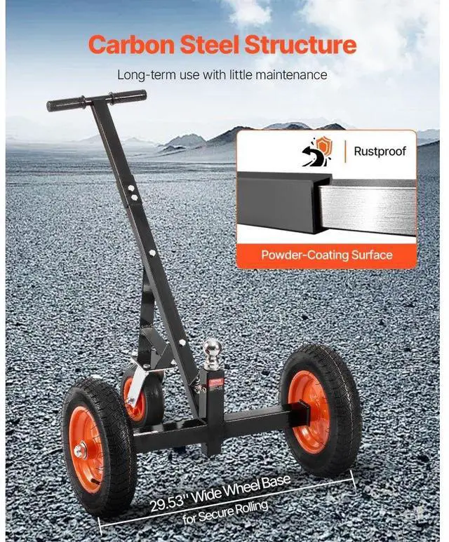1000lbs Trailer Dolly 16.7 and 22 in Adjustable Height 2 in Ball 14 in Tires