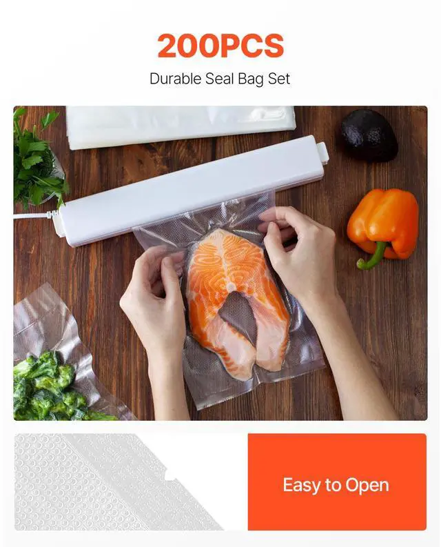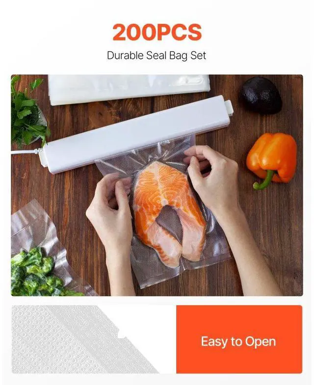 Vacuum Sealer Bags 200 PCS 8 x 12 Inch Non-BPA Food Grade Sealing Storage Bag