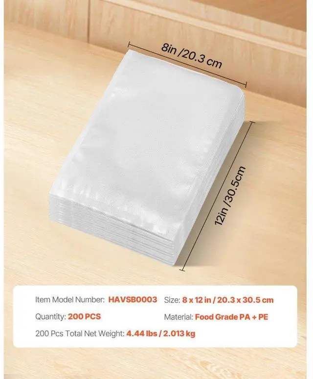 Size: 8 x 12 in / 20.3 x 30.5 cm,Item Model Number: HAVSB0003,Quantity: 200 PCS,Material: Food Grade PA + PE,Net Weight: 4.44 lbs / 2.013 kg