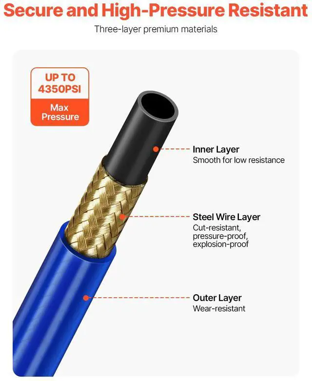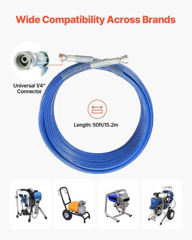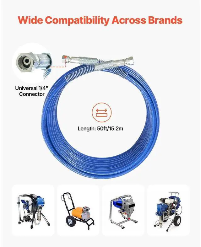 VEVOR 50ft Airless Paint Sprayer Hose 1/4 in Universal Airless Paint Spray Hose