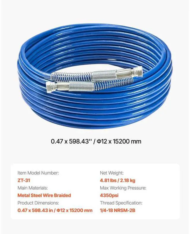 Main Materials: Metal Steel Wire Braided,Thread Specification: 1/4-18 NRSM-2B,Item Model Number: ZT-31,Max Working Pressure: 4350psi,Product Dimensions: 0.47 x 598.43 in / 12 x 15200 mm,Net Weight: 4.81 lbs / 2.18 kg