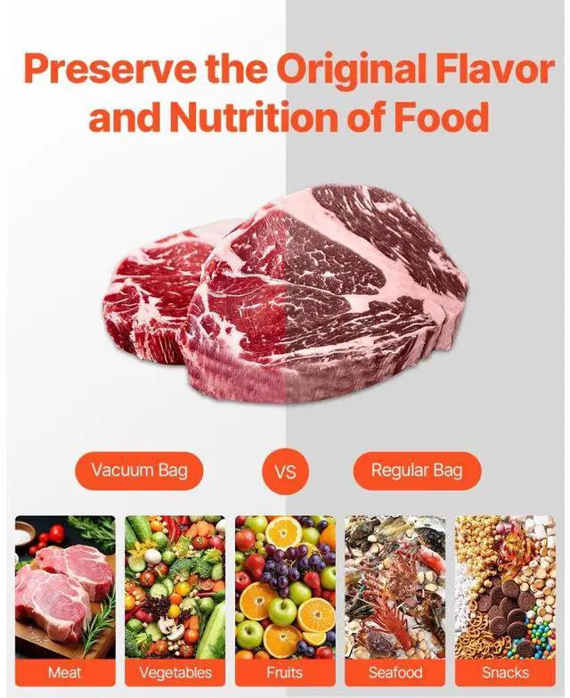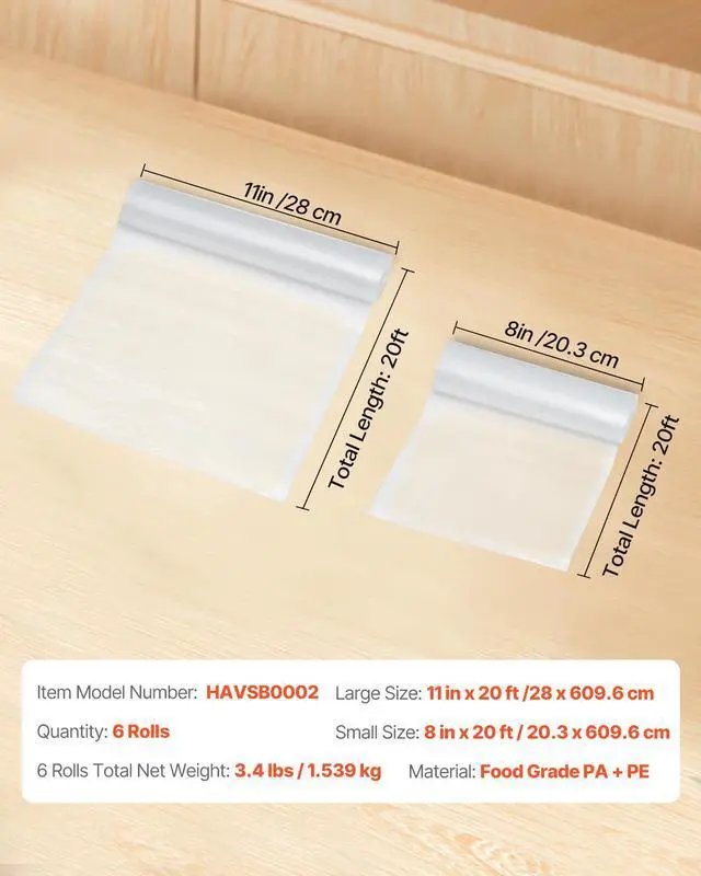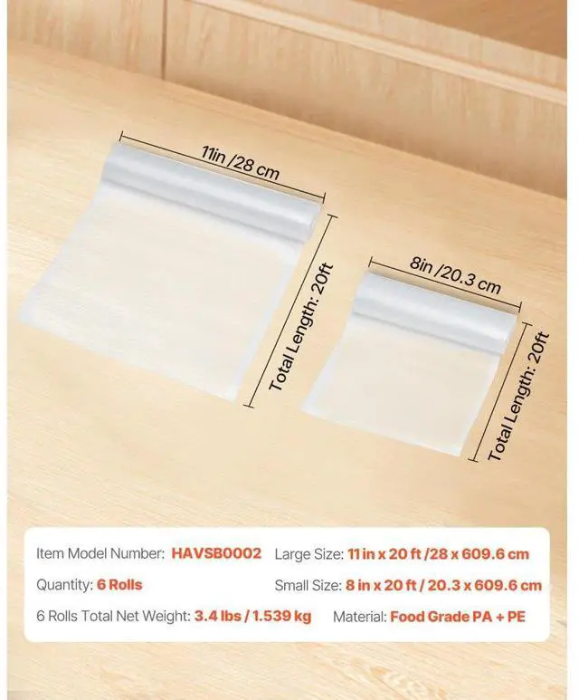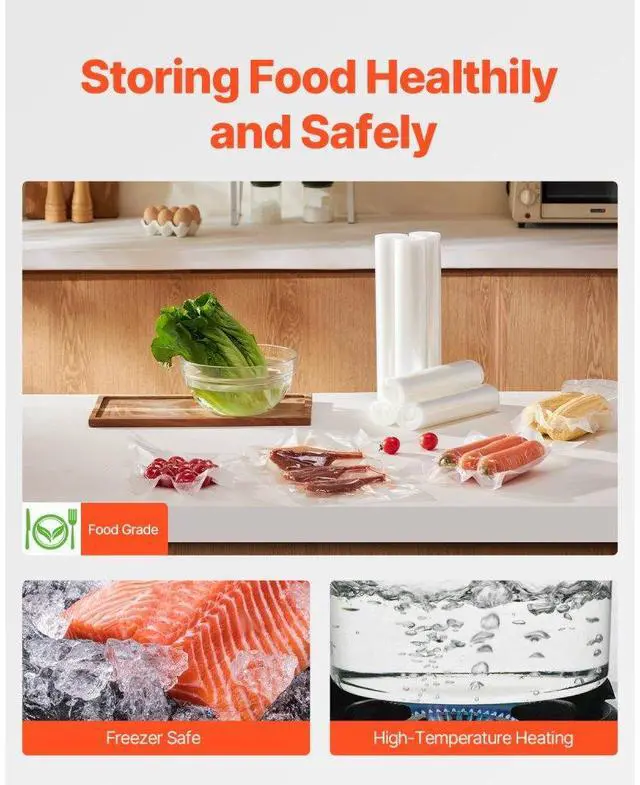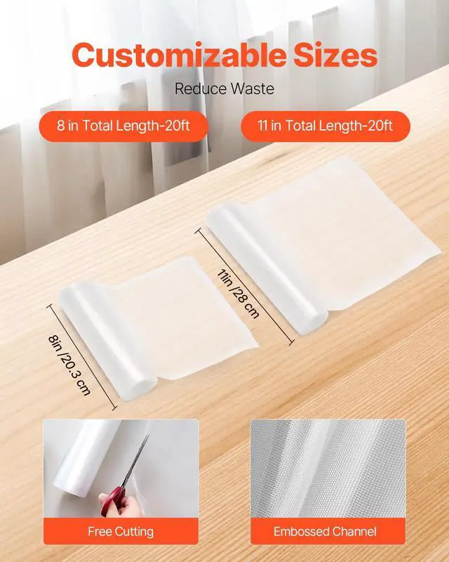 • VEVOR 6 Rolls Vacuum Sealer Bags 11 In x 20 Ft & 8 In x 20 Ft Customizable Non-BPA Bag