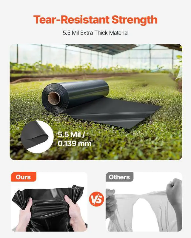 Thickness: 6 Mil / 0.15 mm,Size: 10 × 100 ft (3.05 m × 30.48 m),Color: Black,Item Model Number: YF10FT100FTB6MIL,Product Weight: 25.24 lbs / 11.45 kg,Material: PE (Polyethylene),Rolled Dimensions: 33.86 x 7.28 x 7.28 in / 860 x 185 x 185mm