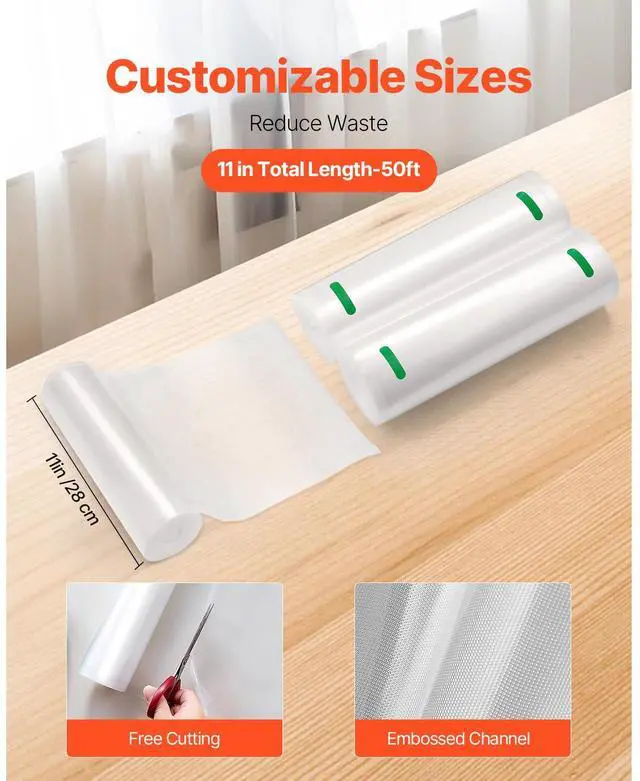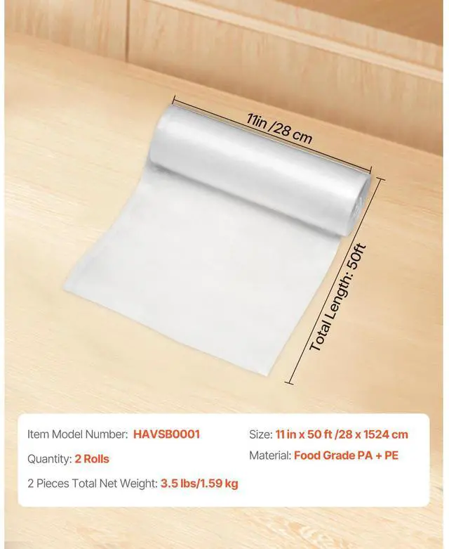 • VEVOR Vacuum Sealer Bags 2 Rolls 11 In x 50 Ft Non-BPA Food Grade Sealing Storage Bag