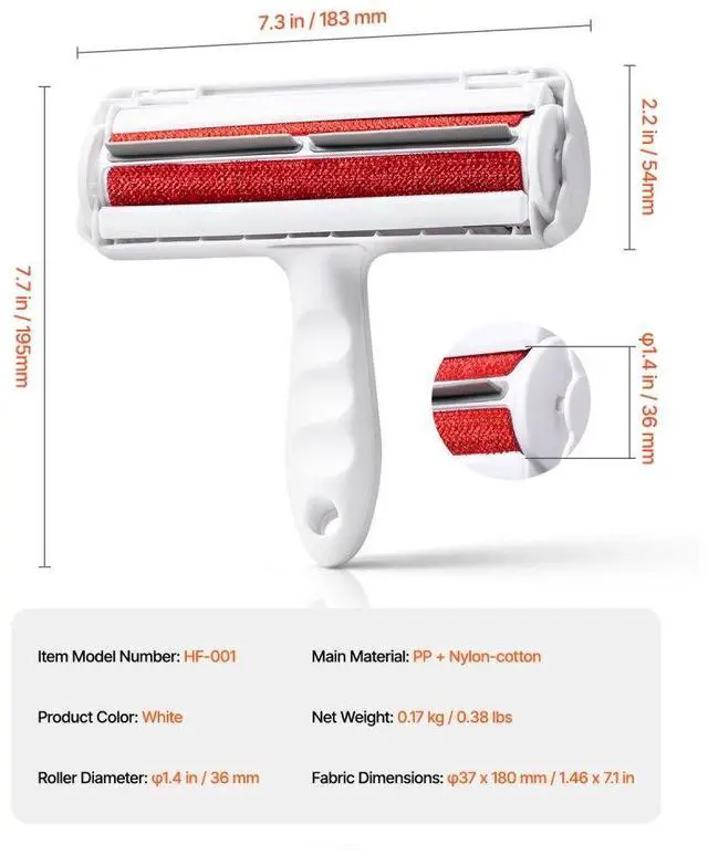 Color: White,Item Model Number: HF-001,Roller Diameter: 1.4 in / 36 mm,Product Dimensions: 7.3 x 7.7 x 2.2 in / 184 x 195 x 54 mm,Fabric Dimensions: 1.46 x 7.1 in / 37 x 180 mm,Net Weight: 0.17 kg / 0.38 lbs,Main Material: PP + Nylon-cotton