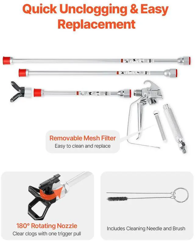 Airless Paint Spray Gun and Hose Kit 3600PSI with Extension Rods Filters