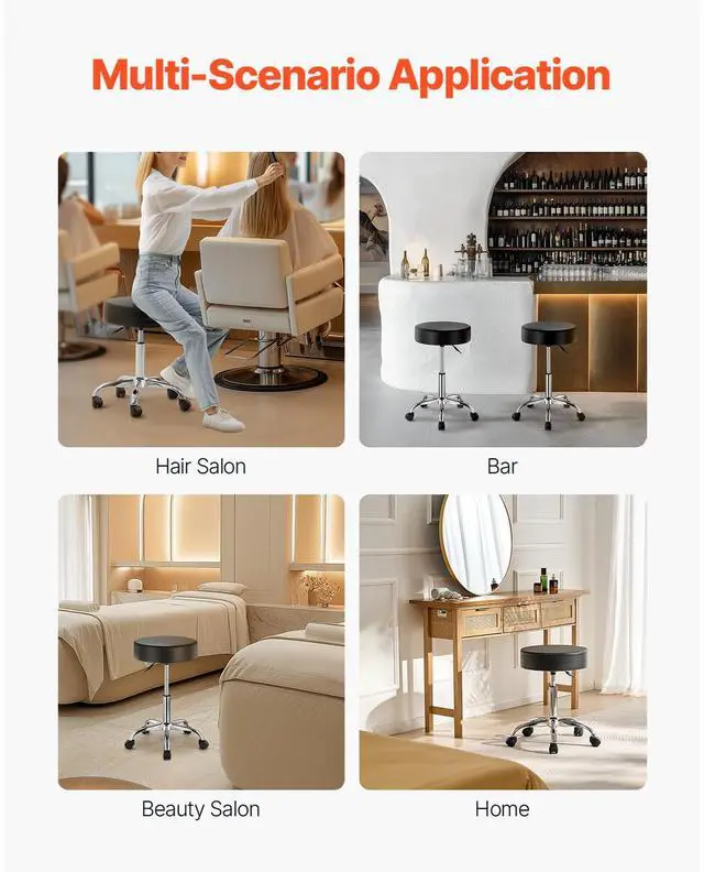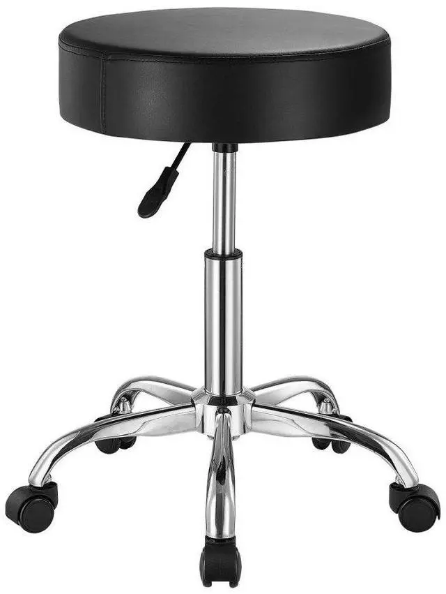 Round Rolling Stool Swivel Work Stool with Wheels Height Adjustable Black