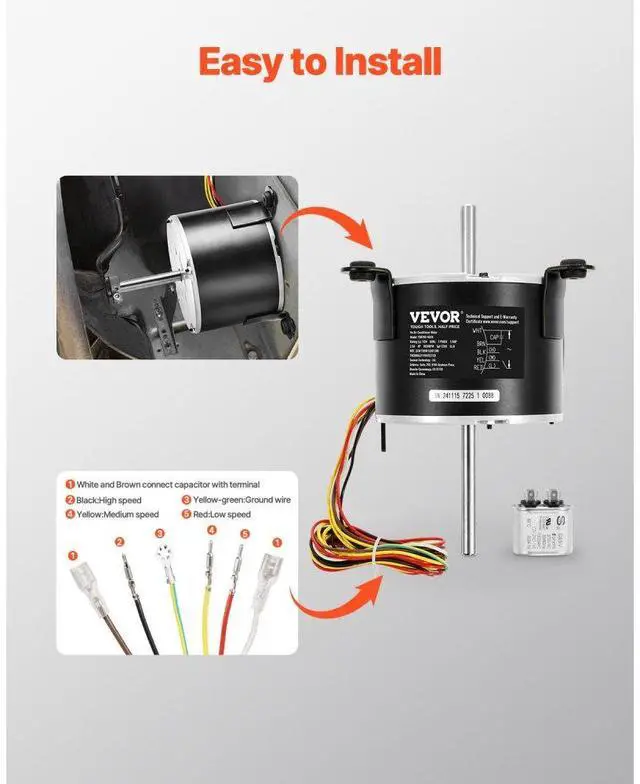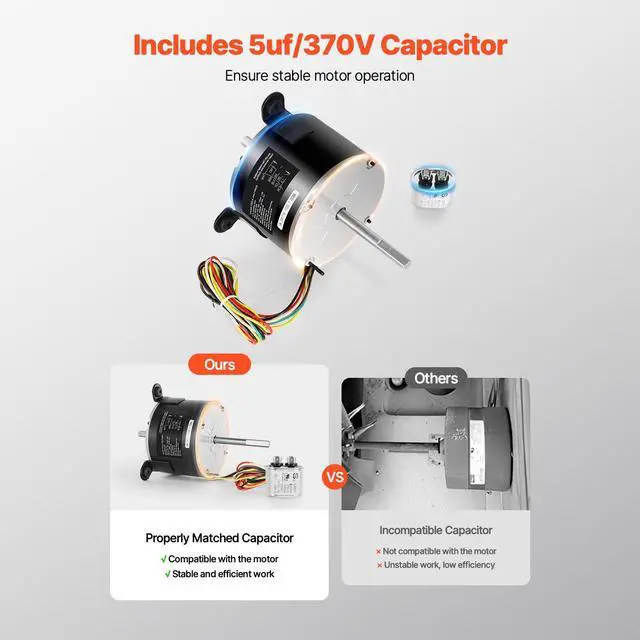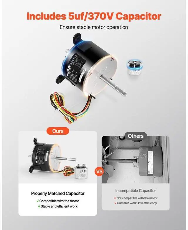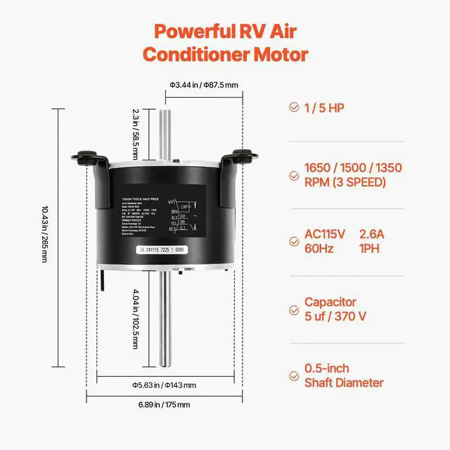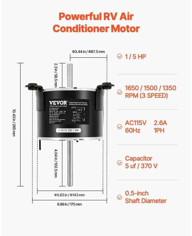 1/5HP RV AC Fan Motor AC115V 2.6A 1650RPM Single Phase with 5uf/370V Capacitor