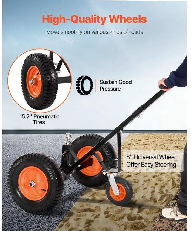 1200lbs Trailer Dolly 18 and 22 in Adjustable Height 2 in Ball 15.2 in Tires