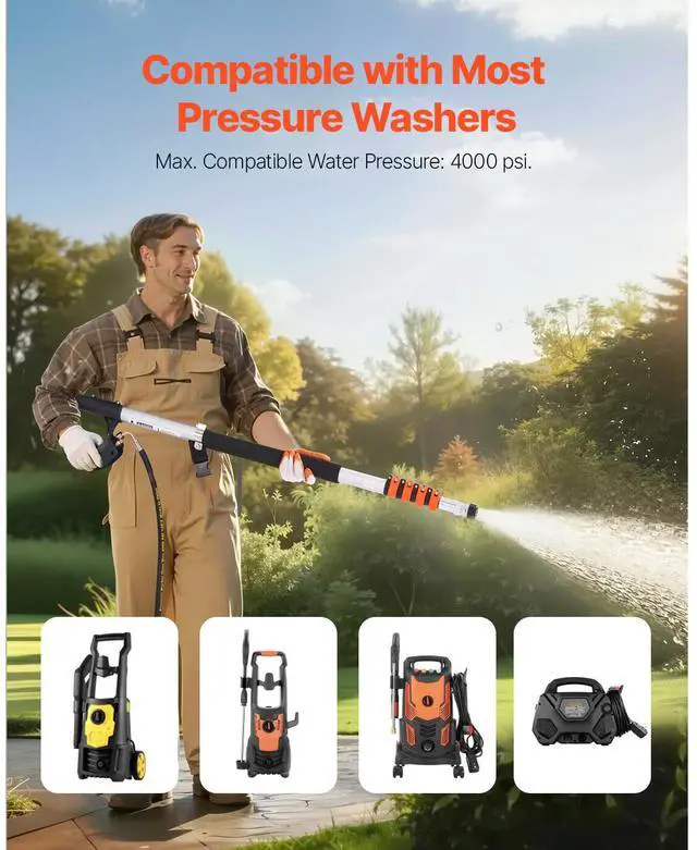 Pressure Washer Telescoping Wand 21 ft Brush Head Included Telescopic Spray Wand