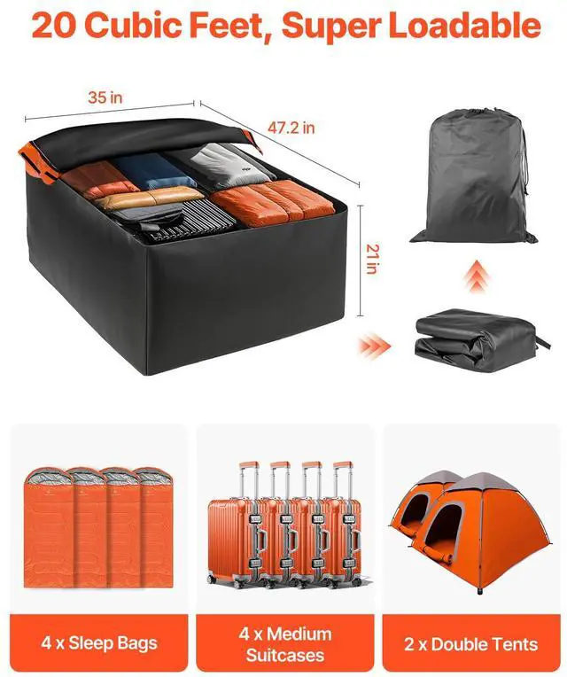 Color: Black & Orange,Item Model Number: THCB-T1120,Bag Capacity: 20 Cubic Feet,Net Weight: 10.1 lbs / 4.6 kg,Main Material: 840D PVC,Product Size: 47.2 x 35 x 21 inch / 120 x 89 x 53.5 cm